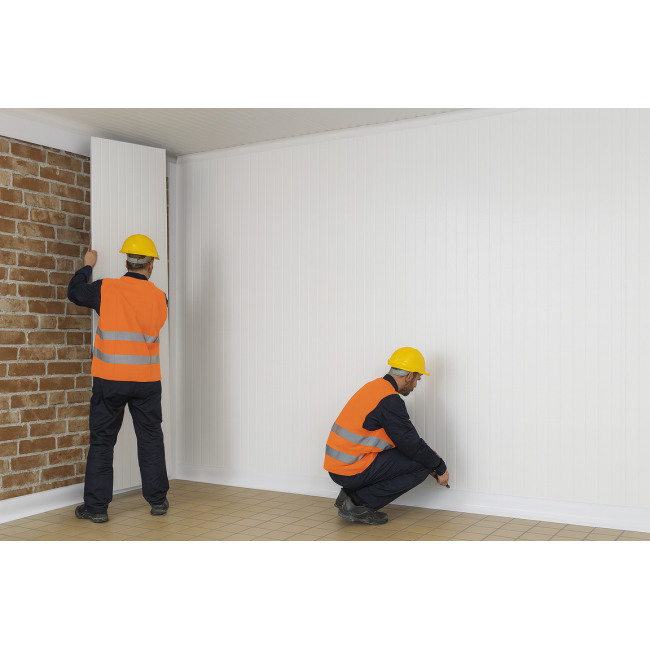 Este revestimiento sanitario es un panel de PVC semirrígido y macizo apto para impactos de transpalets manuales que combina alta resistencia, certificaciones de conformidad a la normativa europea, fácil instalación y limpieza. Lo vemos con detalle a continuación.